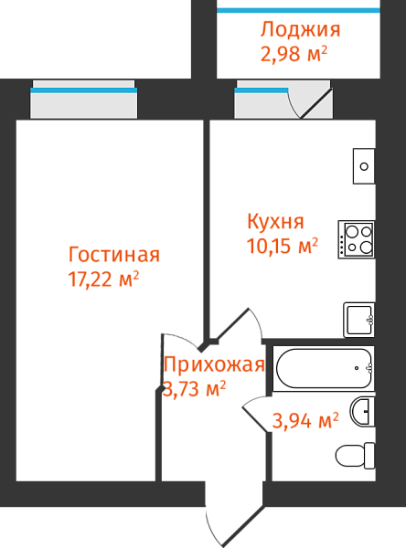 Новая 1-комнатная квартира в ЖК Норские резиденции на 5 этаже площадью 36.53 м² в 2 подъезде номер 38