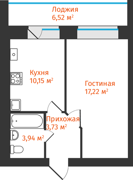 Новая 1-комнатная квартира в ЖК Норские резиденции на 5 этаже площадью 38.30 м² в 2 подъезде номер 39