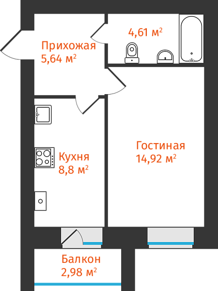 1-комнатная, 35.46м²