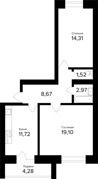 Новая 2-комнатная квартира в ЖК Норские резиденции на 1 этаже площадью 60.43 м² в 3 подъезде номер 44