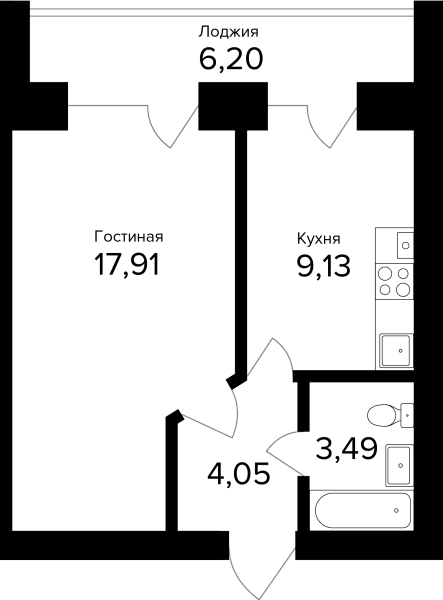 Новая 1-комнатная квартира в ЖК Норские резиденции на 4 этаже площадью 37.68 м² в 3 подъезде номер 54
