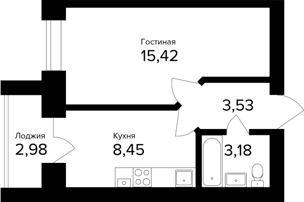 Новая 1-комнатная квартира в ЖК Норские резиденции на 5 этаже площадью 32.07 м² в 1 подъезде номер 19
