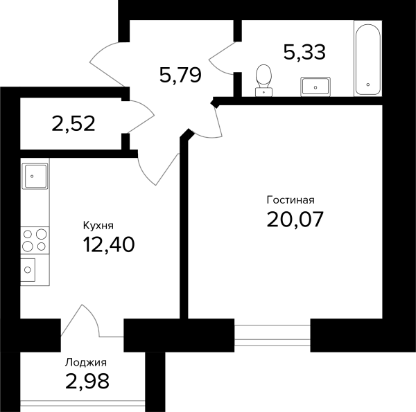1-комнатная, 47.6м²