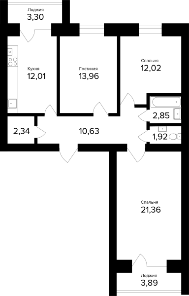 3-комнатная, 80.69м²