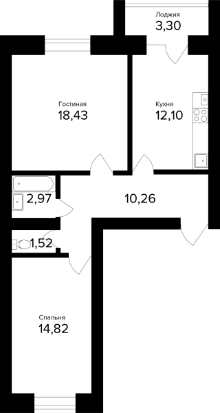 2-комнатная, 61.75м²