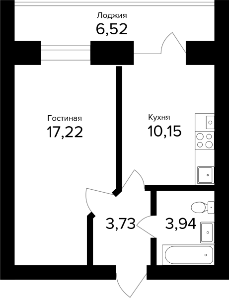 Новая 1-комнатная квартира в ЖК Норские резиденции на 1 этаже площадью 38.30 м² в 1 подъезде номер 2