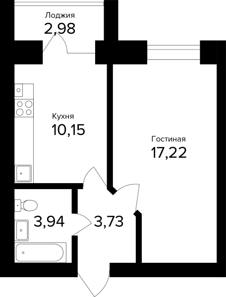 Новая 1-комнатная квартира в ЖК Норские резиденции на 4 этаже площадью 36.53 м² в 1 подъезде номер 15