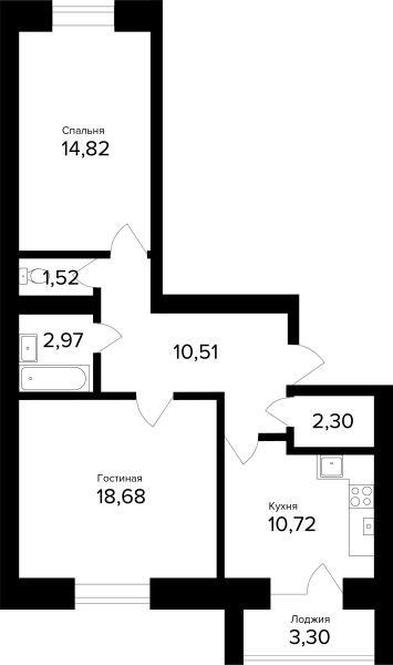 Новая 2-комнатная квартира в ЖК Норские резиденции на 4 этаже площадью 63.17 м² в 2 подъезде номер 33