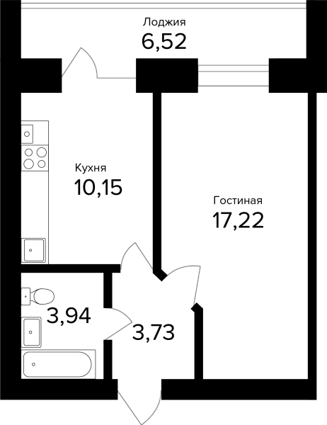 Новая 1-комнатная квартира в ЖК Норские резиденции на 2 этаже площадью 38.30 м² в 2 подъезде номер 27