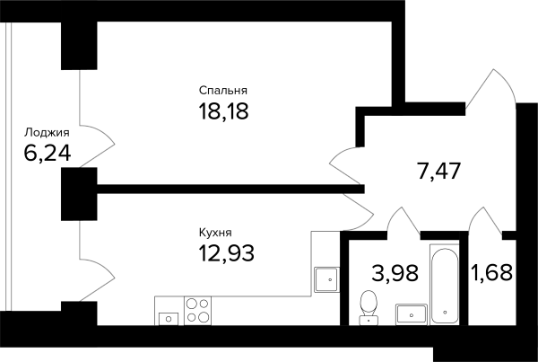Новая 1-комнатная квартира в ЖК Норские резиденции на 3 этаже площадью 47.36 м² в 2 подъезде номер 29