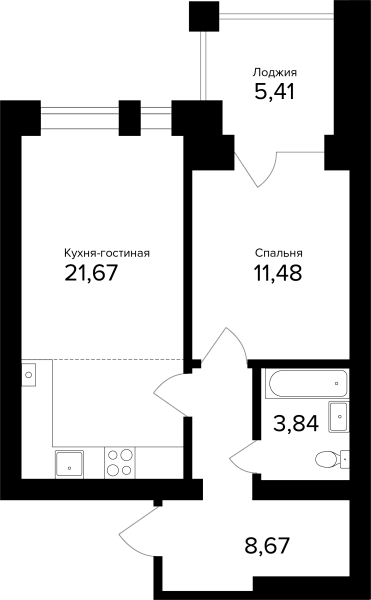 Новая 1-комнатная квартира в ЖК Волга Life резиденции на 1 этаже площадью 48.37 м² в 2 подъезде номер 42