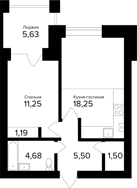 Новая 1-комнатная квартира в ЖК Волга Life резиденции на 1 этаже площадью 45.19 м² в 3 подъезде номер 80