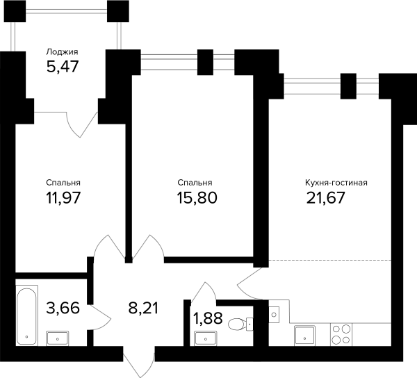 Новая 2-комнатная квартира в ЖК Волга Life резиденции на 1 этаже площадью 65.93 м² в 1 подъезде номер 3